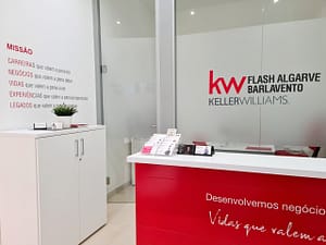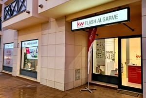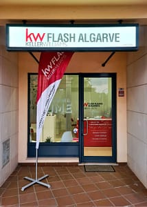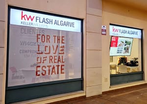Fachada vinil microperfurado, bandeira e reclamo luminoso KW Flash Albufeira