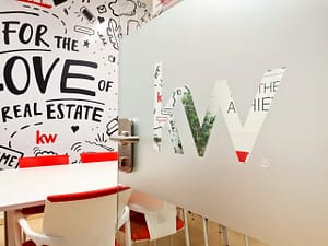 Decoração de escritório com vinil de recorte e vinil frost KW Albufeira
